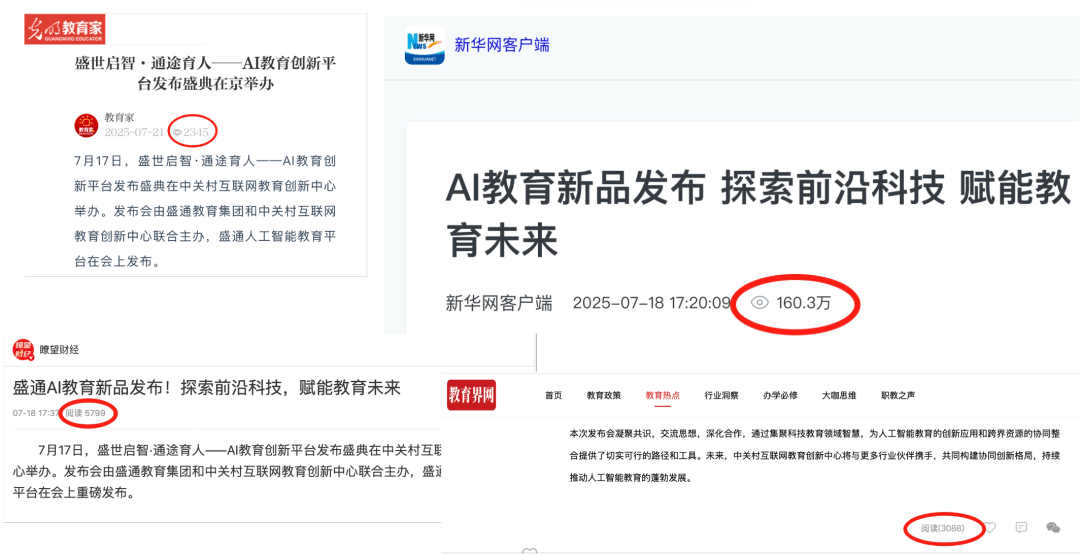 此次发布活动的新闻报道,凭借AI赋能教育的主题重要性和内容的多元价值,有效触达吸引了众多教育政策研究者、科技与教育行业从业者、投资界与财经领域人士以及学生家长等核心读者群体,并受到广泛关注。其中,多家媒体报道浏览量共突破160万余人次。